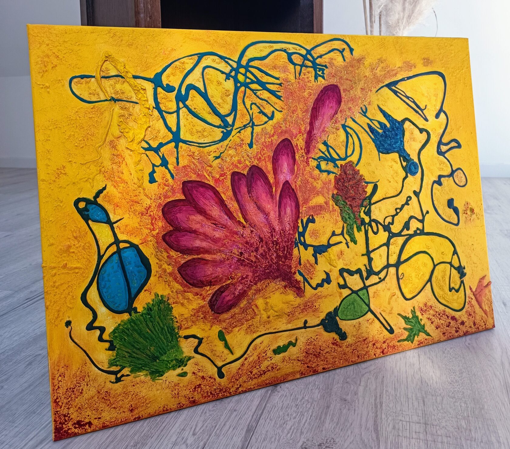 Mes tableaux vivent naturellement dans l’espace : intérieurs, cabinets de praticiens, lieux de calme, de concentration et de transformation.