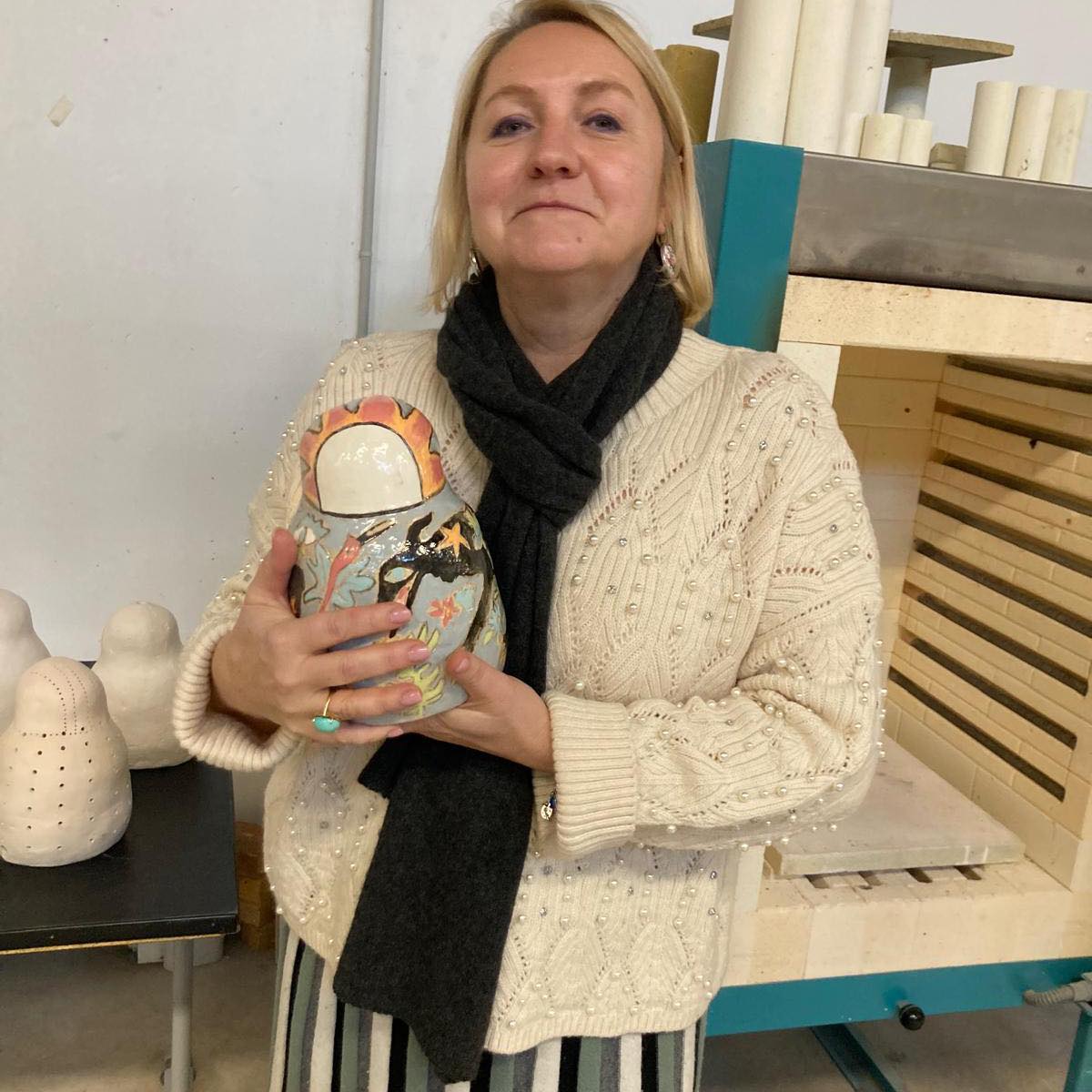 Катя также занимается скульптурой, участвует в выставках.